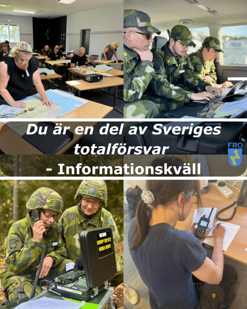 Vi berättar också mer om FRO:s roll inom totalförsvaret – en funktion som är avgörande när samhället behöver fungera även under svåra förhållanden. Kommunikation är ofta en av de viktigaste delarna i en kris, och genom FRO finns möjligheten att bidra med kunskap, engagemang och praktisk förmåga.